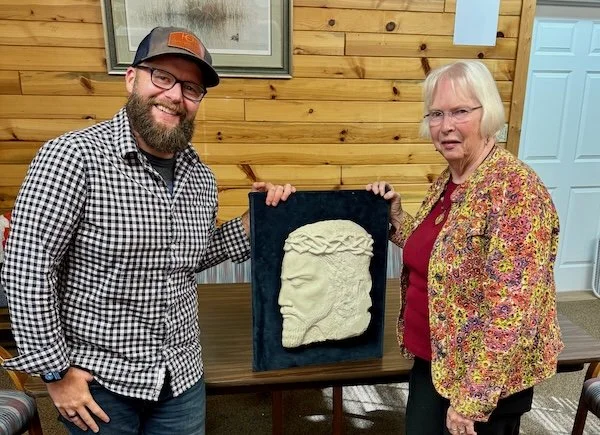 Nenette Loftsgaarden and Aaron Street with the Head of Christ. (Photo courtesy of Chris Hagar)